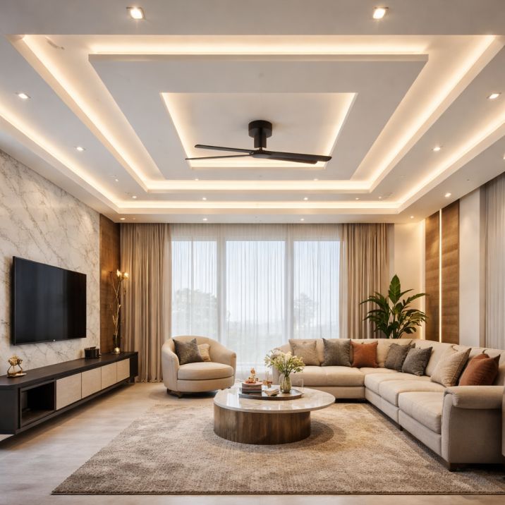 From smooth, seamless surfaces to geometric and artistic patterns, gypsum false ceilings complement modern decor styles such as Scandinavian, industrial, or contemporary designs. With the option to integrate lighting with gypsum ceilings, the ceiling can become a focal point in the room, creating an ambiance that enhances the entire space.